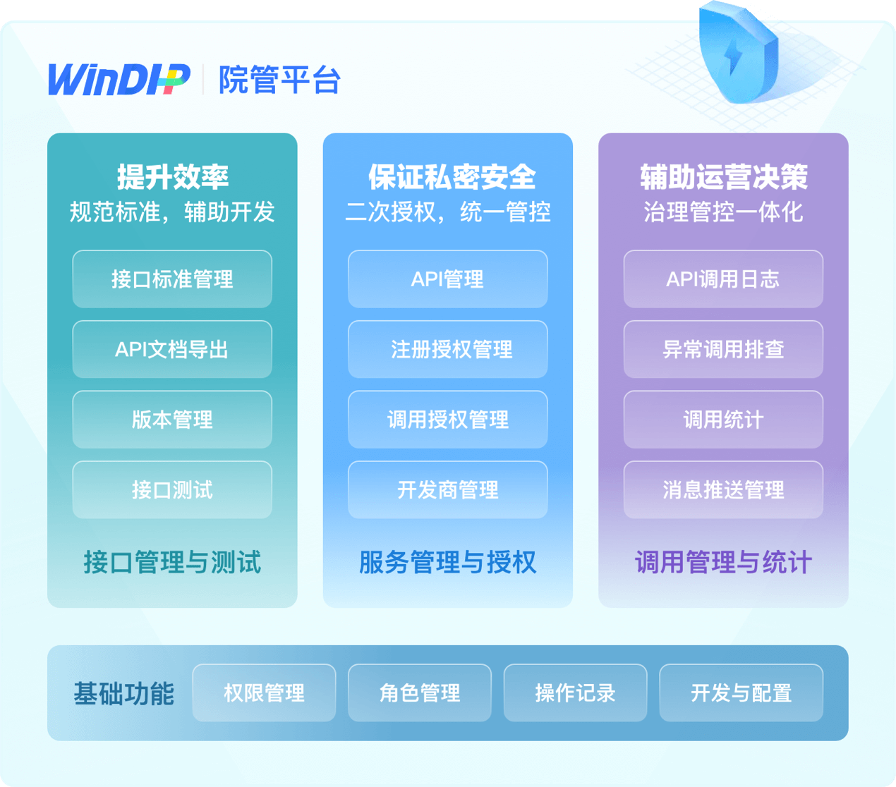 统一管控本院的所有API服务,全方位对信息、数据加密,保证数据传输的私密与安全,二次授权杜绝未经授权的服务外流。